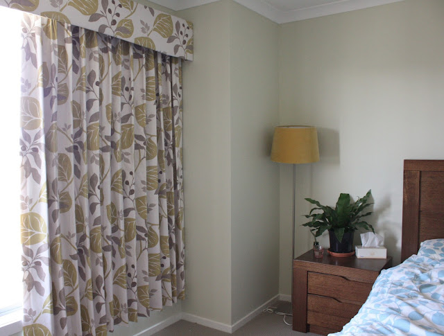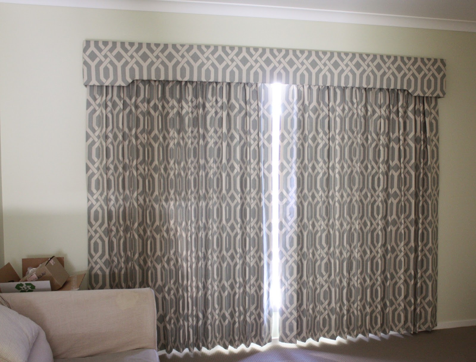 So we finally had our curtains installed.I was actually quite apprehensive about Aaron's choice of fabric for the lounge.(Who would have thought a boy would have had SO so many opinions about fabric, least florals?!)So I did the best thing I could do, let him choose the living room but get what I want in our master bedroom.Fortunately, we actually agree on all rooms with me shakey in the lounge.However, when it got installed yesterday, I thought it actually did quite a good job of anchoring our sliding doors. It's the only bold thing in the house right now. Even the installer said, hey I didn't think this fabric would work but it looks pretty good!That's what the builder said about our choice of colour.I just couldn't bear having no colour or pattern.zzzzzzzWe actually stuck with a palette for three different rooms, despite the different patterns.The lounge:Because our windows are quite large and we don't have double glazing ($$$$), we added pelmets to keep it insulated. It's amazing what curtains can do, we felt so much warmer in the lounge last night. These curtains are THICK, they are double backed with sun backing material as well.The theater room got a more modern and darker fabric. I have always wanted geometric in some form. Aaron and I both really liked this fabric.Finally, our master bedroom. Here the installer informed me that the curtains were made to the wrong specifications. It is too short as you can see in the photo, so a new one is being made. Our bedroom gets the morning sun and that's about it, so I wanted something bright and colourful. The sage green picks up the green in the walls and goes well with the timber furniture.